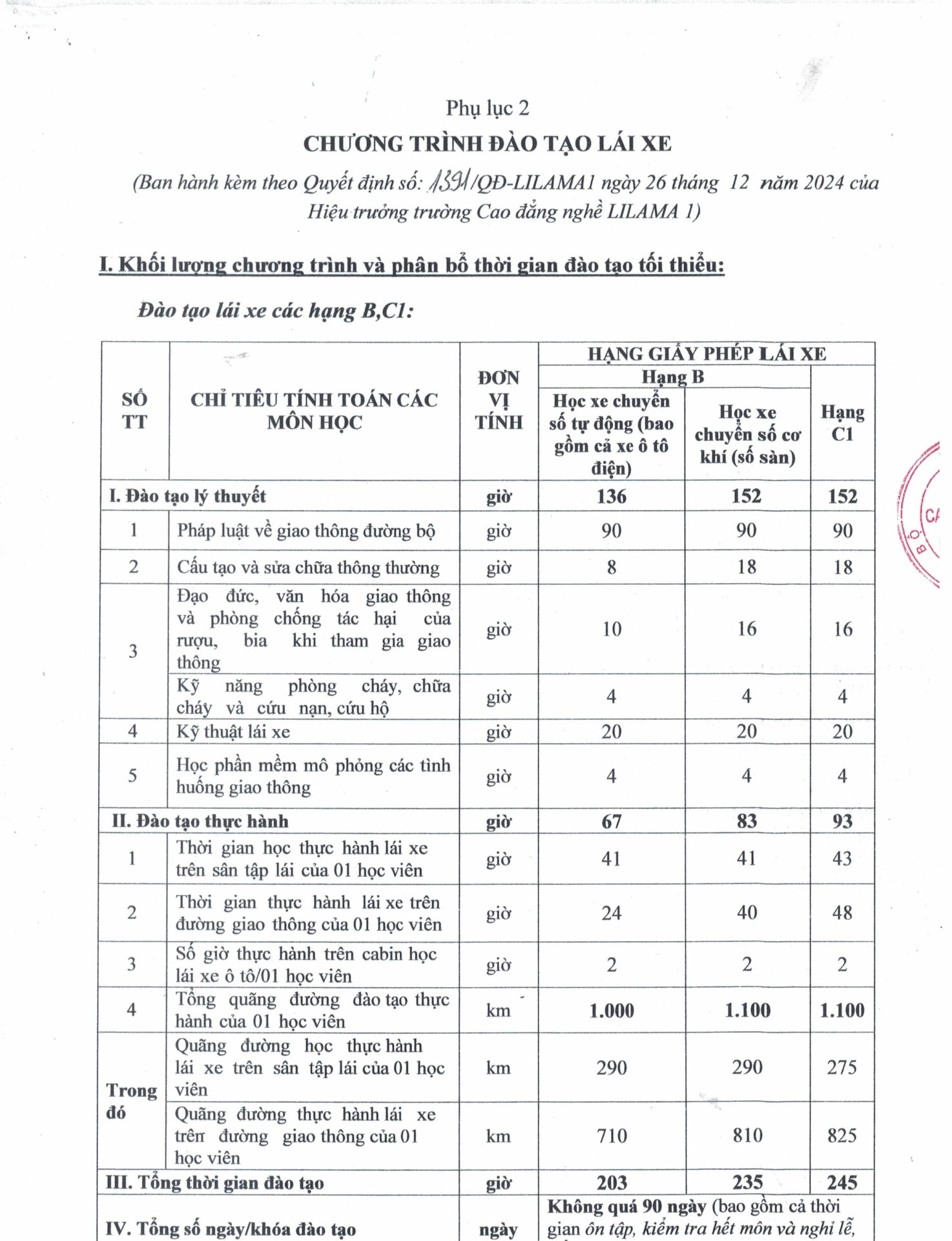 Chương trình đào tạo lái xeChương trình đào tạo lái xe tại Trung tâm đào tạo lái xe - Trường Cao đẳng nghề LILAMA 1.
