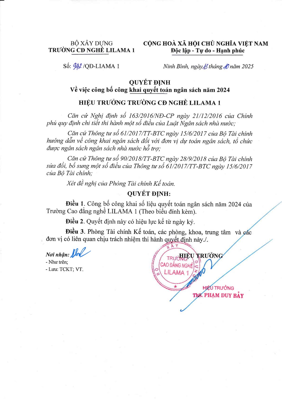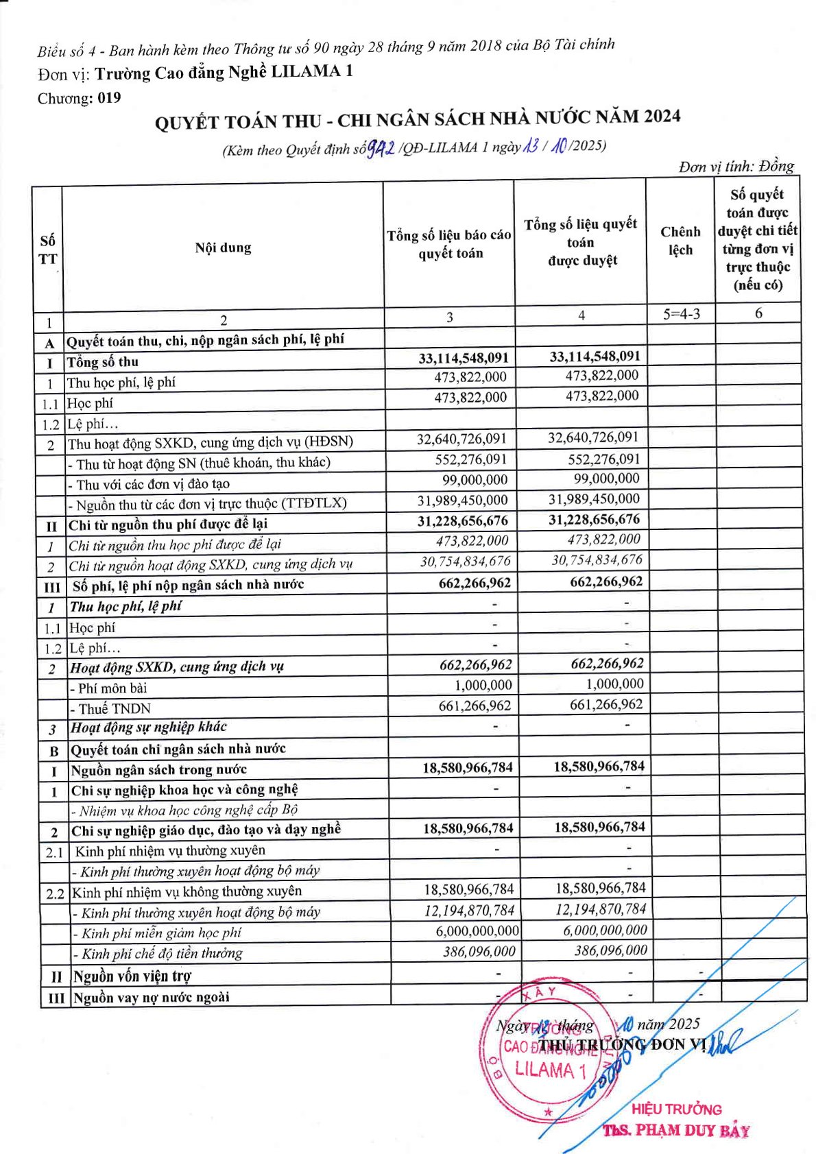 Quyết toán ngân sách năm 2024Công bố công khai Quyết toán ngân sách năm 2024 của Trường Cao đẳng nghề LILAMA 1.