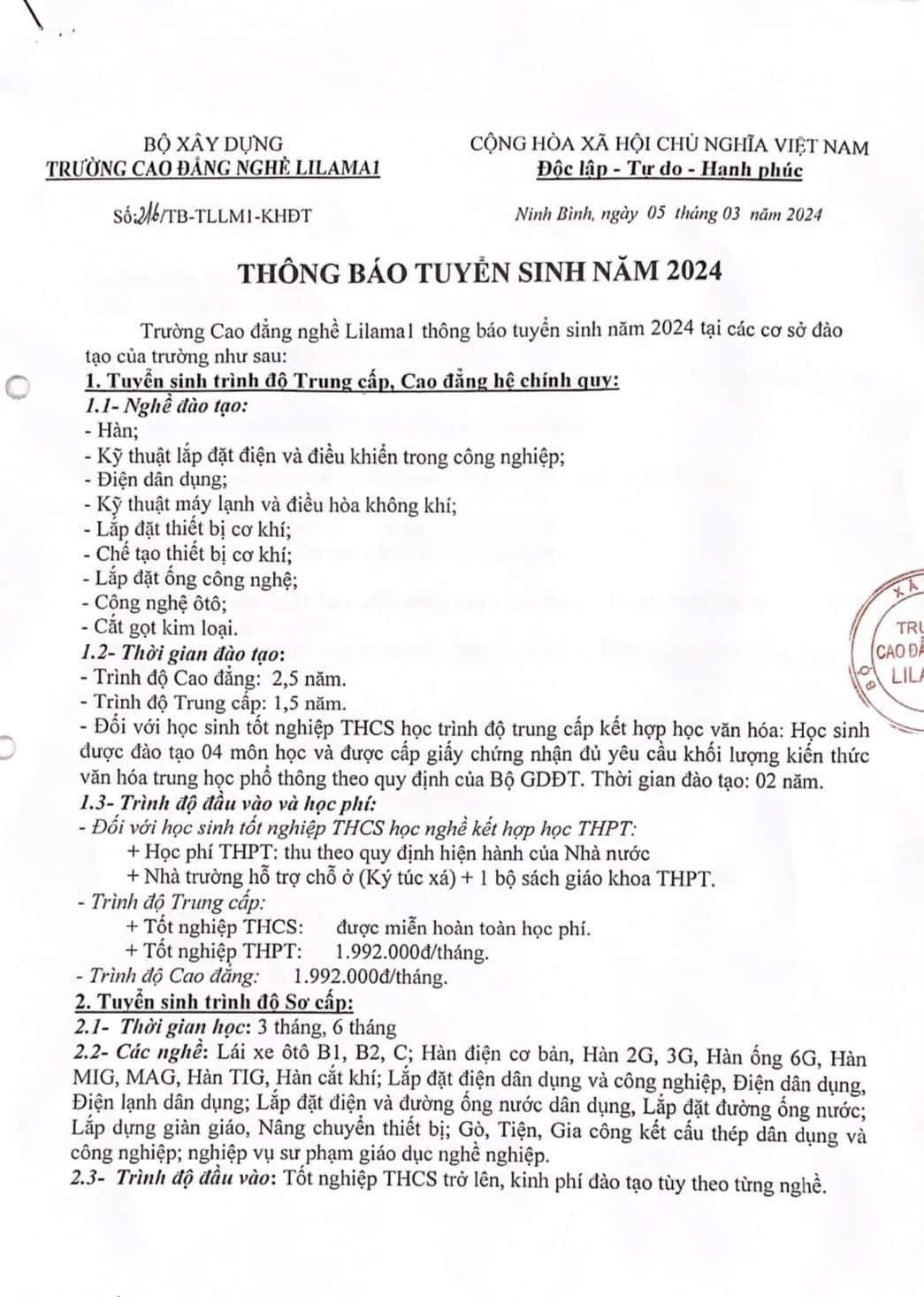 Trường Cao đẳng lilama1 thành phố Ninh Bình Nơi khởi đầu lập nghiệp của bạn - với nhiều chương trình đào tạo ưu việt: